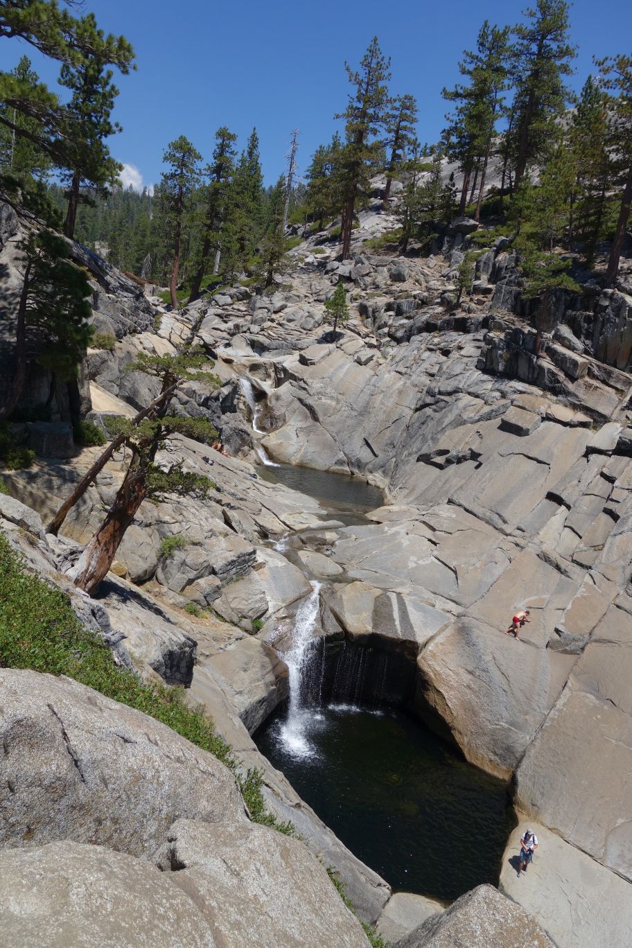 This is where a lot of hikers stop. Apparently we have to go up those rocks to the left of the falls – there’s a trail, but it gets steep, and there isn’t much shade. I don’t blame folks for stopping here, but we’re continuing on. Hopefully there will be less people on this second half the trail.