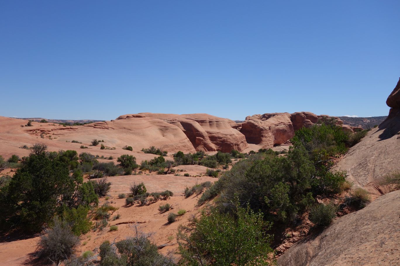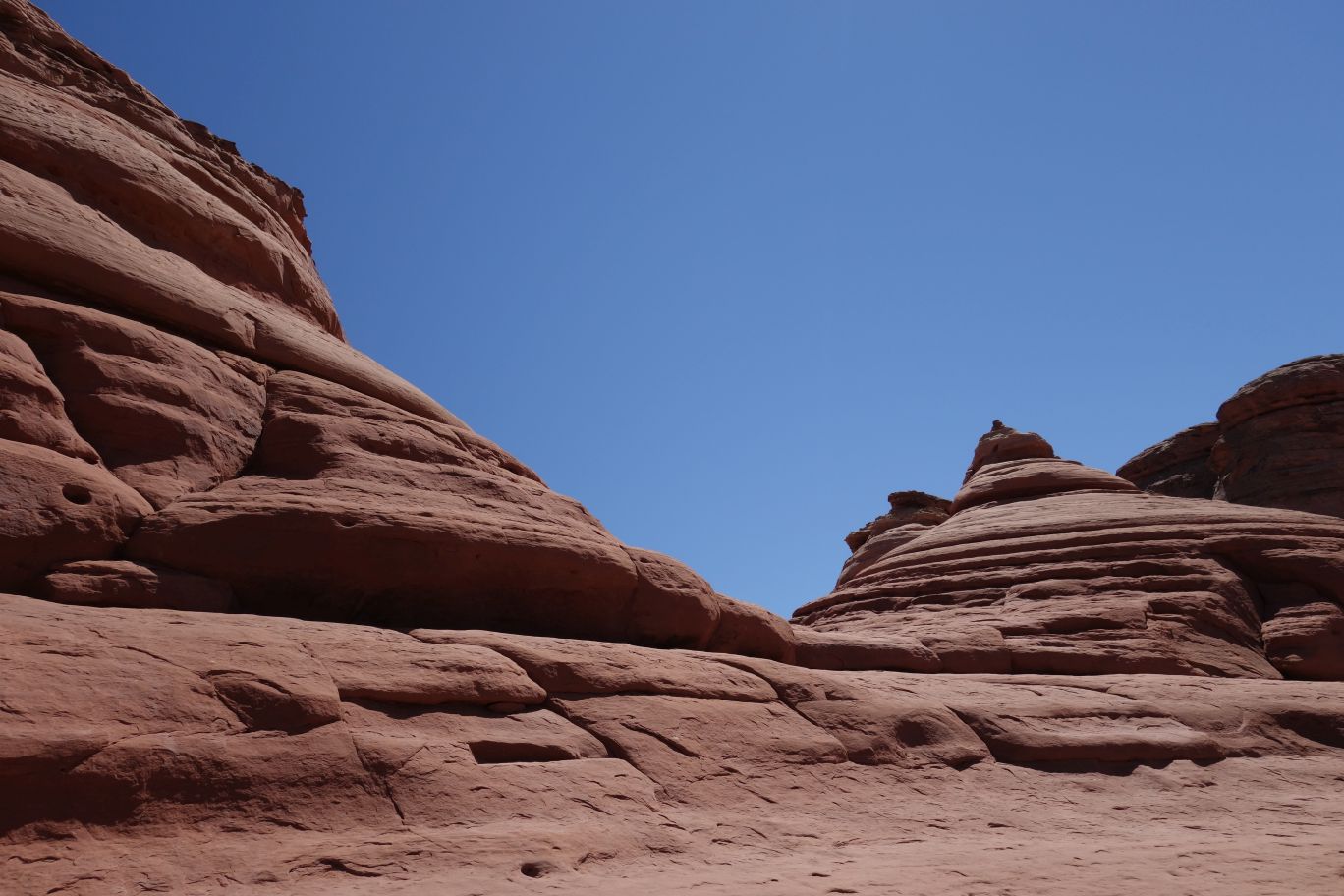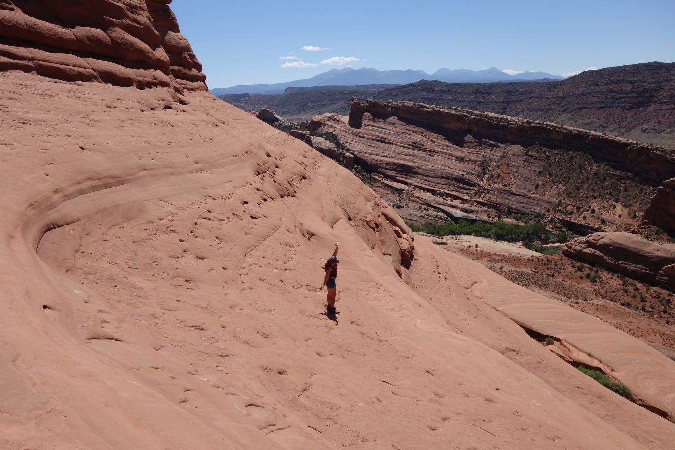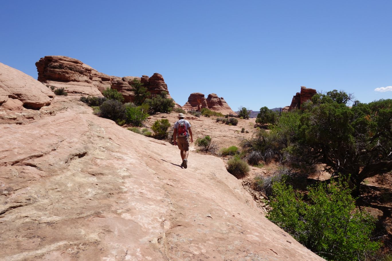 Now we head up. This is solid rock and grips pretty well. JA has been out in Moab mountain biking before – apparently this type of rock is the common stuff out here and is a lot easier to ride on than the limestone we have in Austin. I can definitely see myself on a bike roaming around out here. Well, not at the National Park, but surrounding areas.