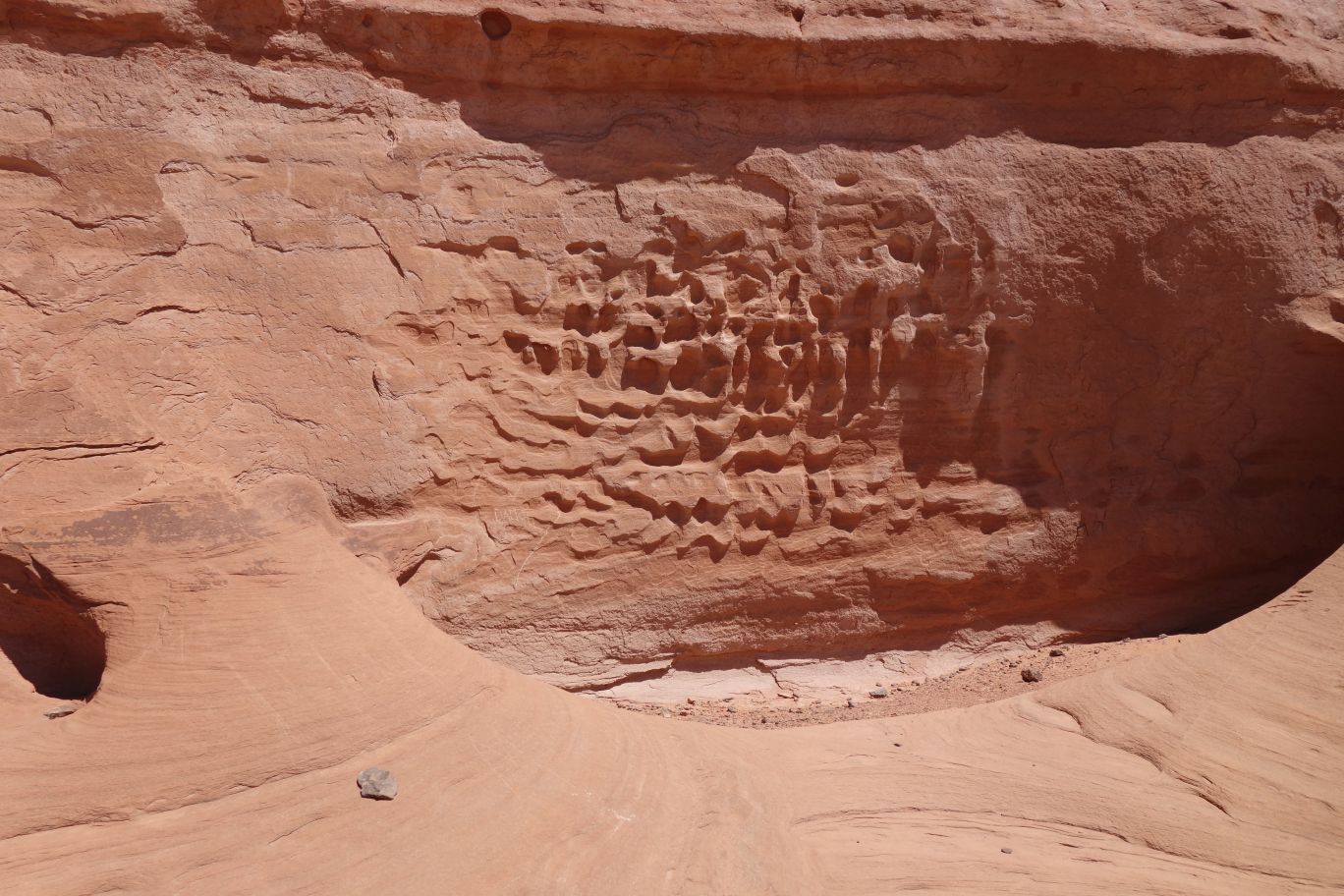 Not sure what caused that in the rock. Rain, maybe? Animals? who knows? This wall was a little taller than me.